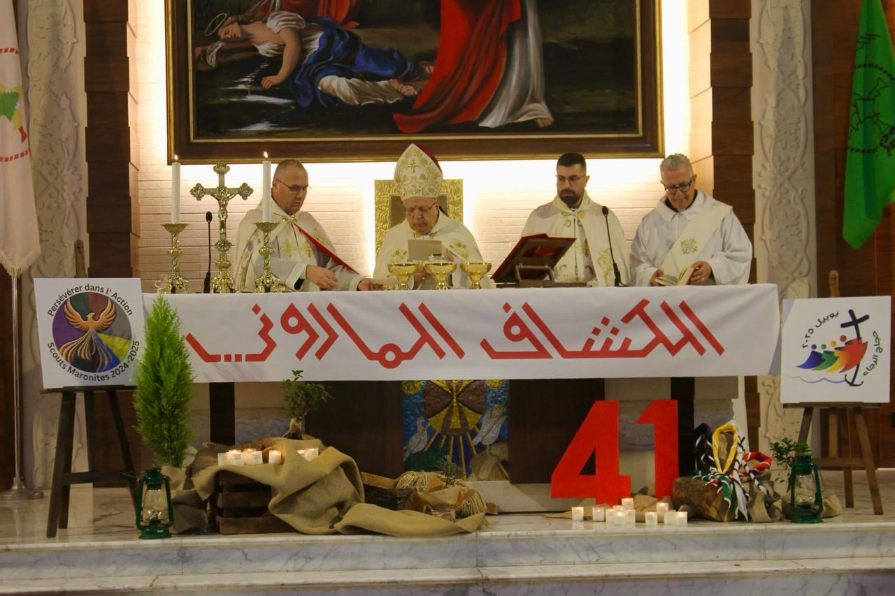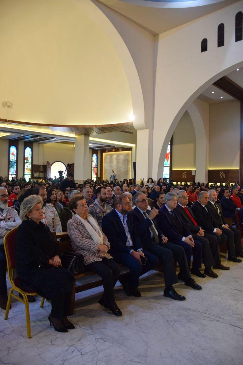 February 19, 2025 - Participation of the President of the Maronite Foundation in the World, Mrs. Rose Choueiri, along with Board Member Engineer Joseph Estefan and his wife, and General Director Hiam Boustani, in the celebratory Mass marking the 41st annual feast of the Maronite Scouts Association, presided over by Archbishop Antoine Nabil Andari, at the Church of Saint Sophia and Daughters – Safra.
